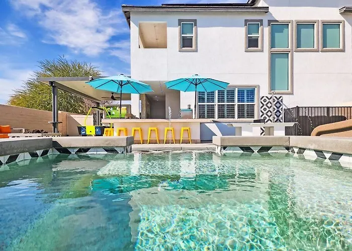 Summer Fun, Water Slide, Arcade, Theater villa comes with a full kitchen with a toaster, a stove top, and glassware for making meals onsite. Offering American specialties, restaurant Pom is around 10 minutes away by car. For a more enjoyable stay, the Indio accommodation offers film nights and karaoke and entices guests to participate in ping pong, pool, and darts.